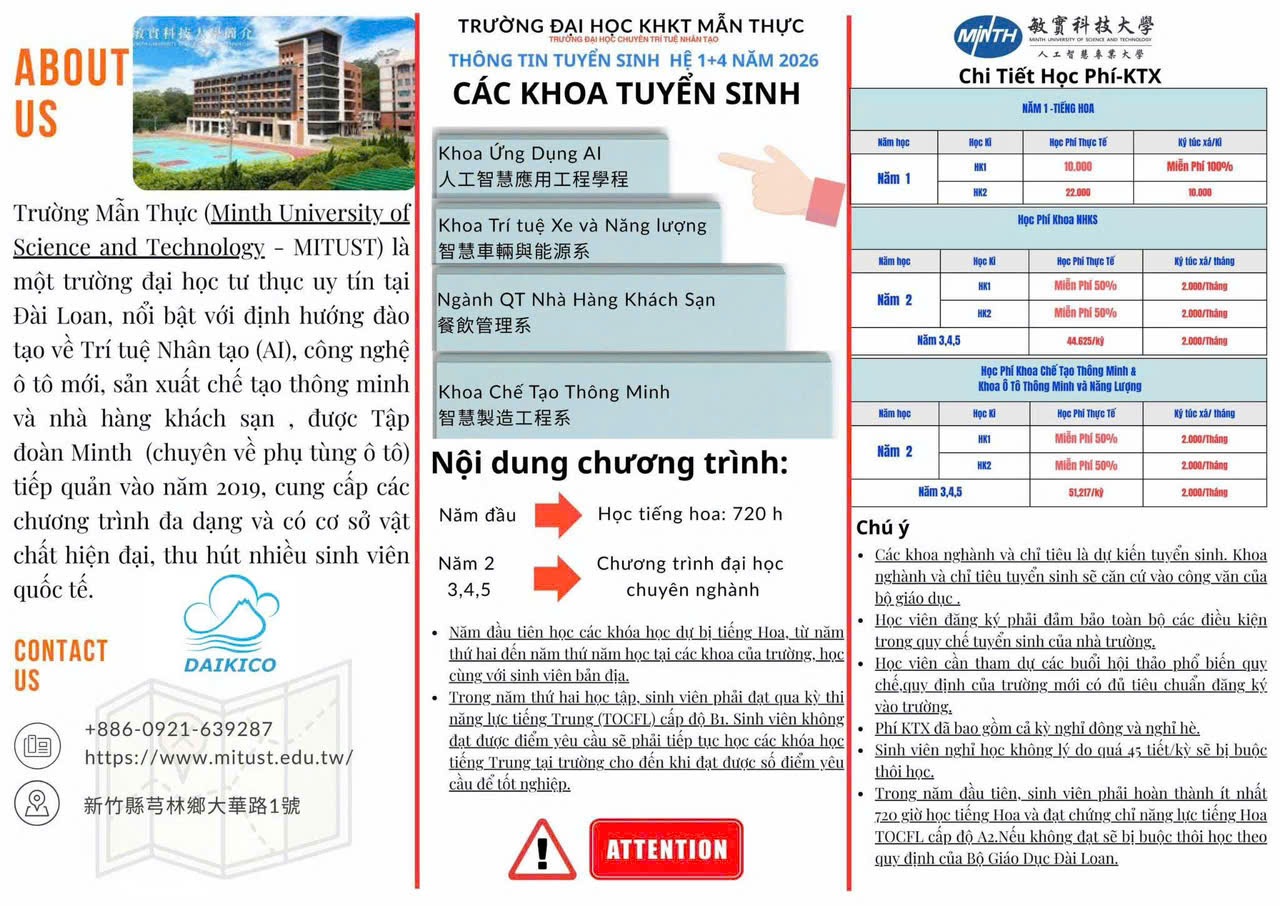 🎓 THÔNG BÁO TUYỂN SINH 2026 – TRƯỜNG ĐẠI HỌC KHOA HỌC KỸ THUẬT MẪN THỰC (MITUST) 🇹🇼